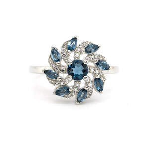 Срібна каблучка 925 проби 2,75 г зі шрі-ланкійським зірчастим Сапфіром класу АААА та топазами зі США 3,11 карат